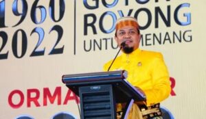 Andi Sudirman Sulaiman, Plt Gubernur Sulsel, saat menghadiri acara HUT Ormas MKGR. (Doc.Ist)